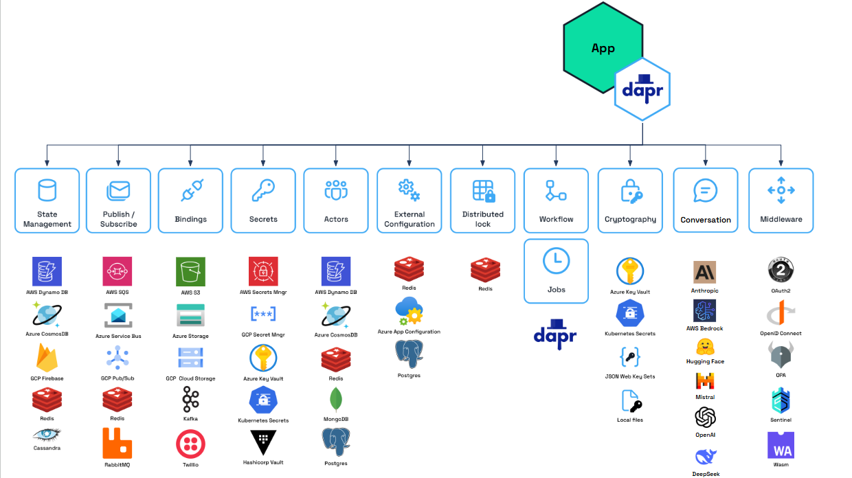 You can contribute implementations and extend Dapr’s component interfaces capabilities via: