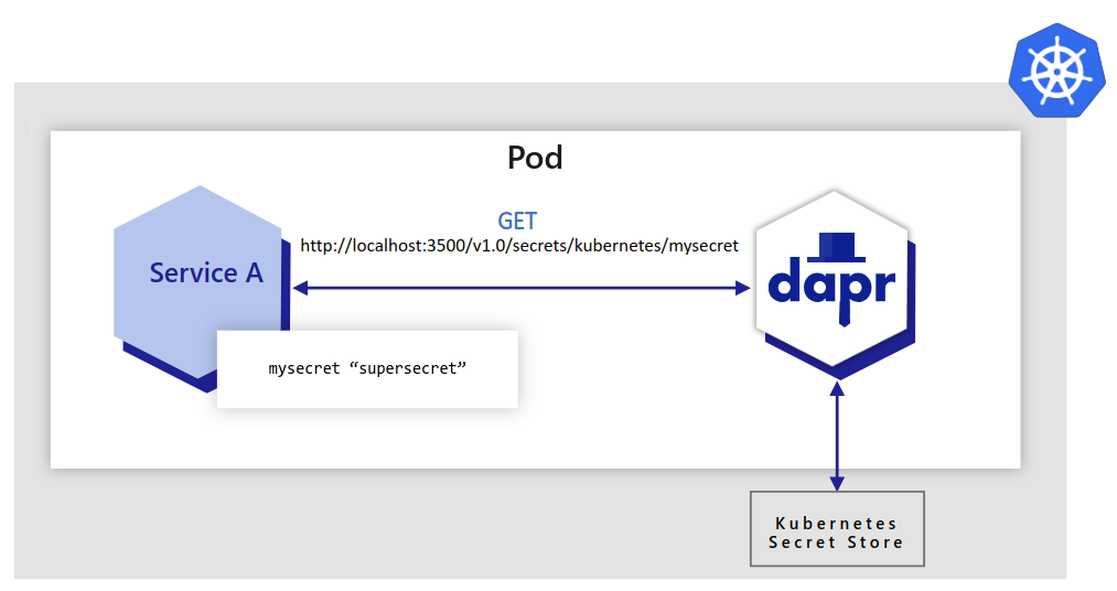 Applications can also use the secrets API to access secrets from a Kubernetes secret store. By default, Dapr enables a built-in Kubernetes secret store in Kubernetes mode, deployed via: